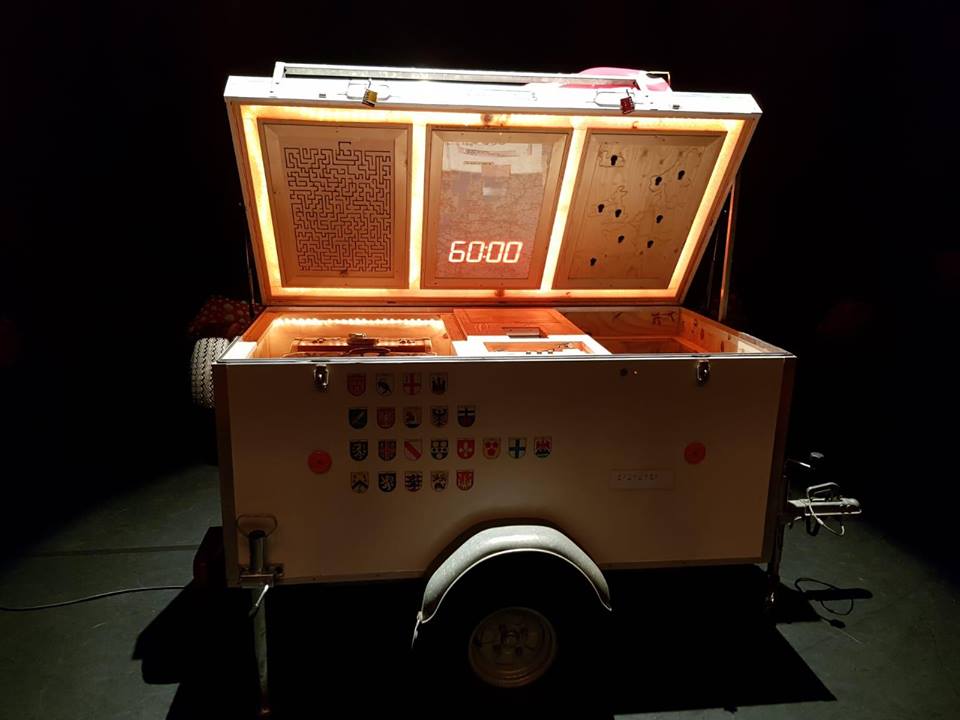 Voor een escaperoom op locatie heeft Doc’s Design de mobiele escaperoom bedacht. Deze aanhangwagen heeft als thema ‘We gaan op vakantie en nemen mee…’. Door samen te werken moet men binnen 60 minuten tot een oplossing komen.